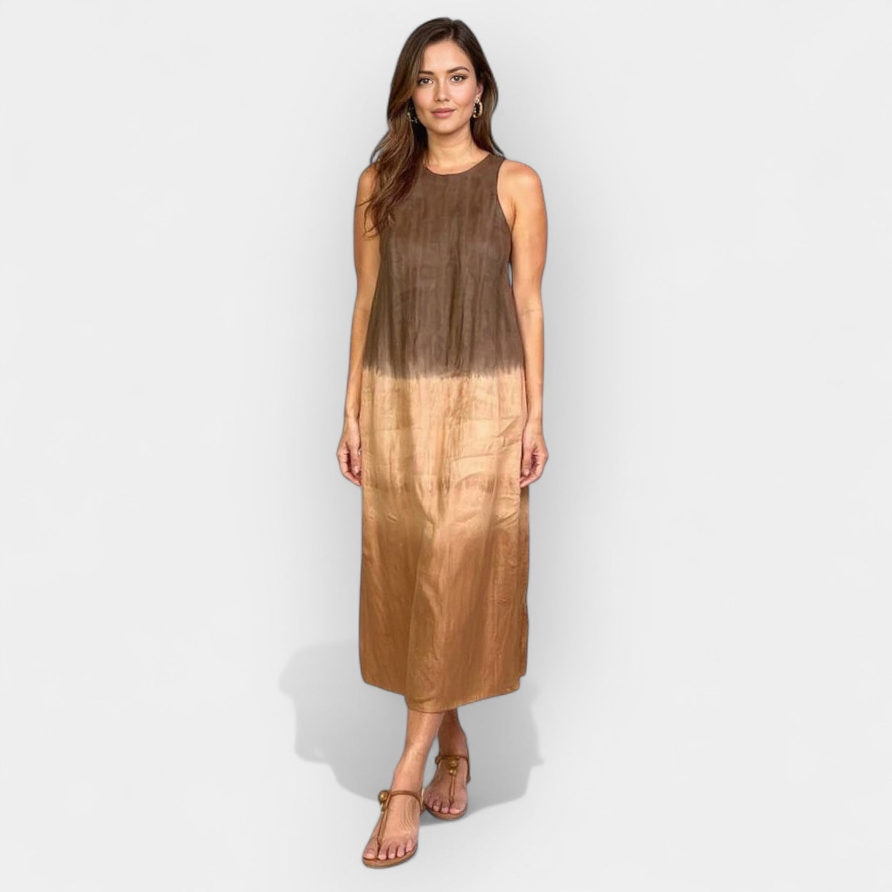 Με φυσική ροή και διακριτικό χρωματικό ντεγκραντέ, αυτό το φόρεμα προσφέρει ανεπιτήδευτη κομψότητα. Η σύνθεση από βαμβάκι και λινό εξασφαλίζει δροσερή αίσθηση και άνεση όλη μέρα, ενώ η απαλή υφή του αγκαλιάζει το σώμα με φινέτσα.