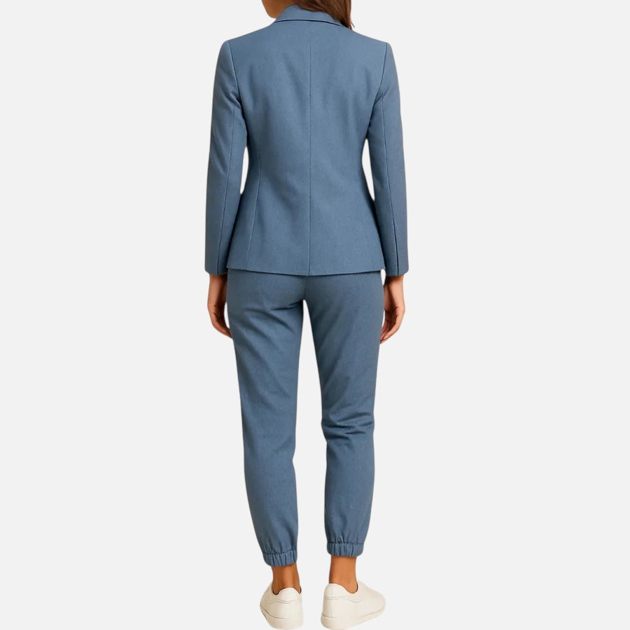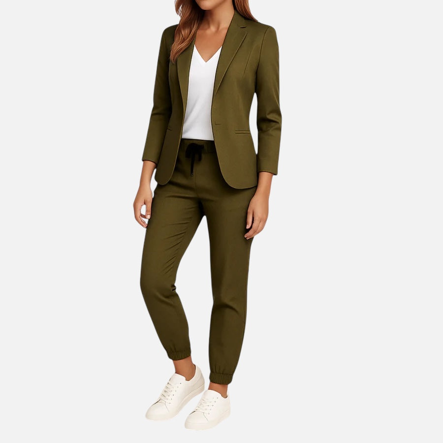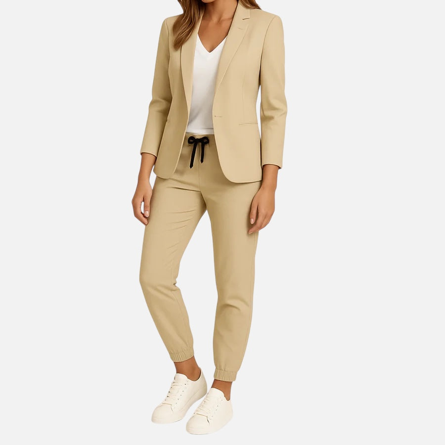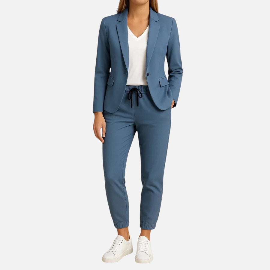 Συνδύασε το σετ με ένα μακρύ παλτό και μποτάκια για ένα κομψό φθινοπωρινό look ή φόρεσε το σακάκι με ένα τζιν και αθλητικά παπούτσια για ένα πιο casual αλλά πάντα κομψό στυλ.